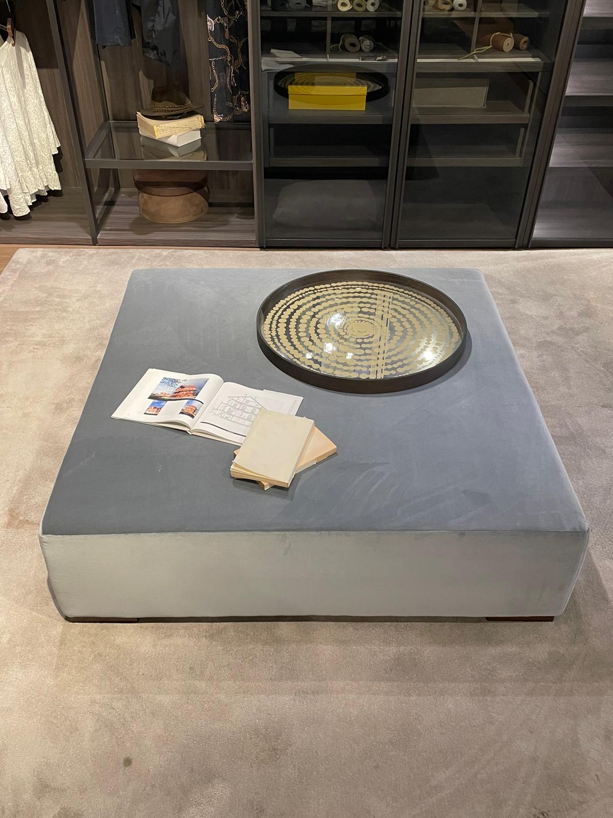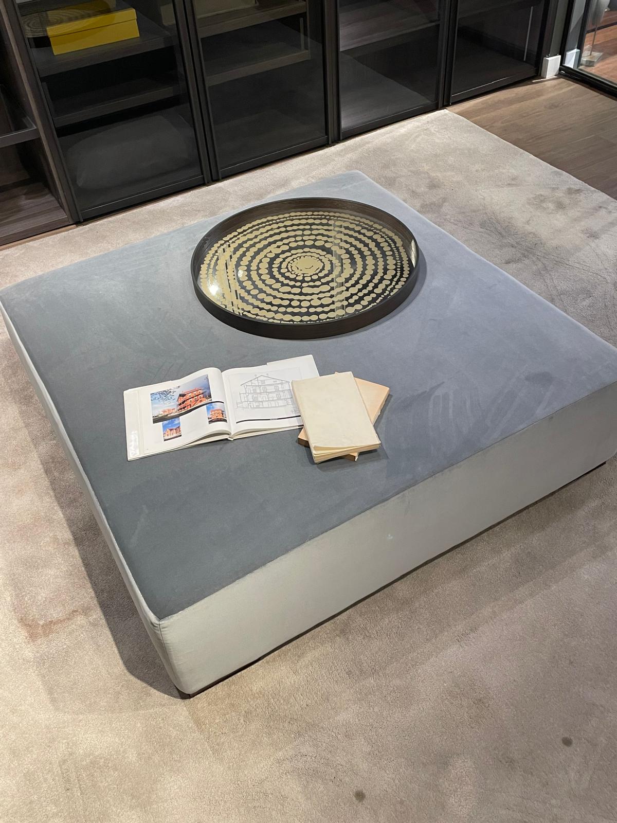 Pouff cuadrado tapizado en acabado aterciopelado en color gris piedra de medida 120×120 cm. Ideal para un espacio de vestidor, juegos o sala de estar.
